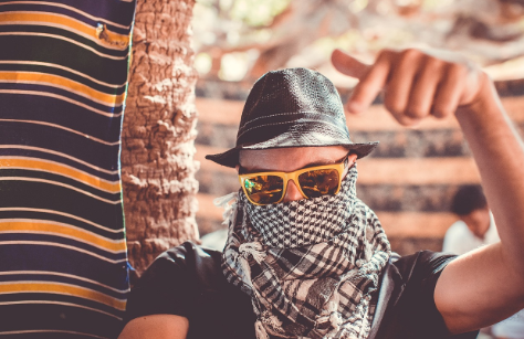 - 다음으로는 반다나 (Bandana) 인데요. 일명 터번 혹은 멀티 스카프로 불리기도 합니다. 사진상과 같이 머리에 쓰고 등산 모자용으로 사용되기도 하지만 팔, 목 등 다양한 기타 부위에도 착용이 가능합니다. 반다나는 워낙 다양한 디자인과 색상이 출시되고 있기 때문에 개성을 뽐낼 수 있고 나만의 등산 패션을 완성시키는데도 도움을 줍니다. 스카프를 머리에 두르고 있는 듯한 느낌이기 때문에 미미한 수준의 자외선 차단 효과가 있고요. 춥거나 바람이 많이 부는 산행지에서는 잘 사용되지 않고 있습니다. 등산 시에 땀이 눈으로 흘러내리는 것을 방지해 주기 때문에 건조한 날씨나 땀을 많이 흘리는 산행지에서 애용되고 있는 모자라고 할 수 있습니다.