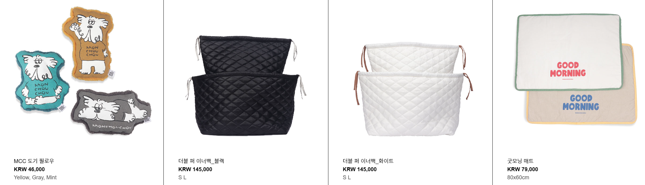 - 몽슈슈는 몽슈슈만의 브랜드 색깔로 귀엽고 실용적인 제품들이 많이 출시되기 때문에 반려동물을 키우시는 분들께 굉장히 인기가 많은 브랜드이고요. 몽슈슈에 있는 디자이너들이 반려견을 정말 사랑하는 사람들만 모여 제품을 디자인하기 때문에 반려동물에게 좋은 원단과 디자인을 만들기로도 유명합니다.