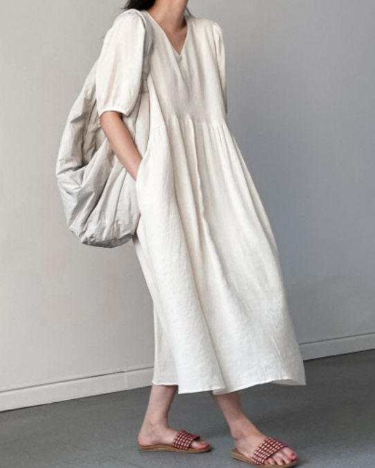 체형이 보정된다는 점도 큰 장점 중 하나입니다. 타이트하고 슬림한 옷보다 훨씬 덜 부담스럽고요. 더불어 여성스러운 느낌도 강조할 수 있어 좋습니다. 여기에 아주 얇은 카디건이나 셔츠 하나만 걸쳐도 훨씬 패셔너블한 효과를 얻을 수 있다는 점도 맥시 드레스의 장점입니다. 첫번째 스타일링으로는 맥시 드레스를 추천해 드립니다.