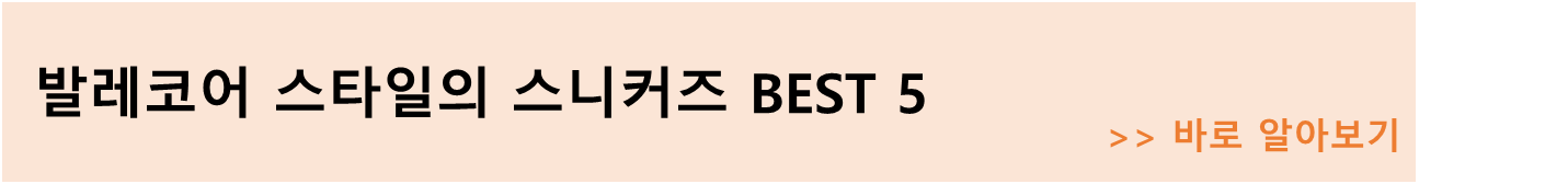 발레 슈즈가 궁금하신 분들은 상단에 배너를 확인하시면 좋을 것 같아요. 상단 배너는 제가 일전에 써놓았던 발레코어 스타일의 운동화 BEST 5에 대한 내용입니다.