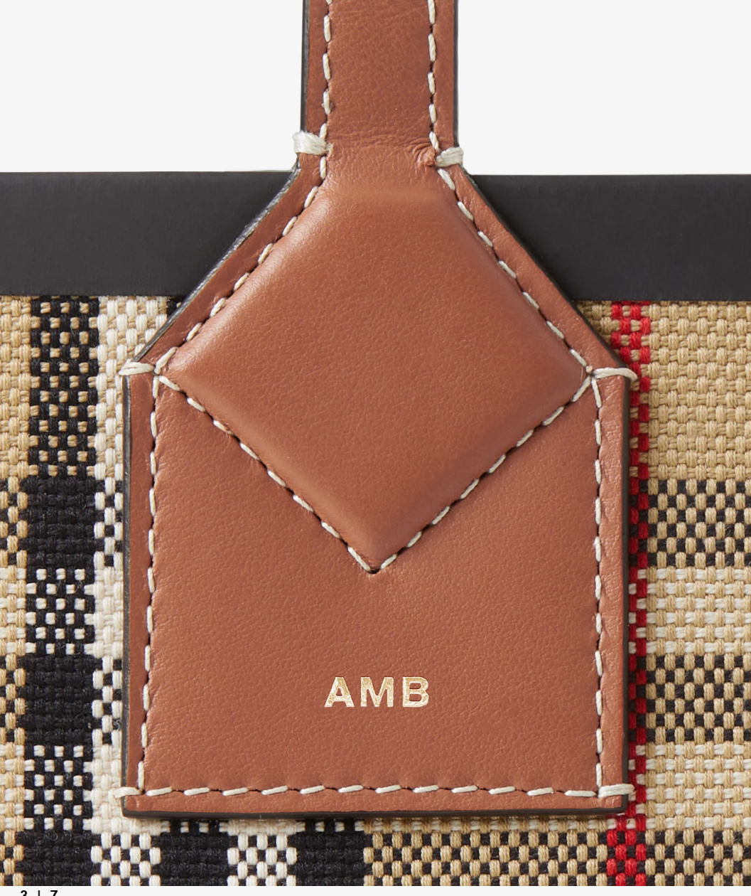 - 네 번째 제품은 탑 핸들 노트 백입니다. 가격은 2,390,000원입니다. 버버리 체크 소재의 아카이브 스타일이 돋보이며 로고가 새겨진 스냅 단추가 특별함을 더하는 노트 백입니다.