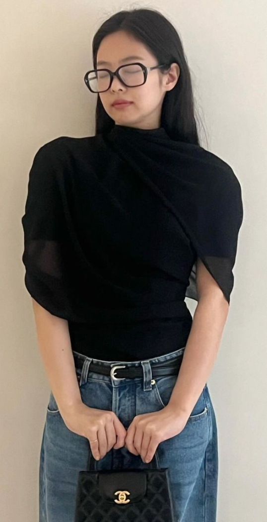 세번째는 바로 이번 성수동 샤넬 코코크러쉬 팝업 행사 때 가지고 나왔던 가방인데요. 이번에 제니 씨는 여름 날씨에 맞춰 파격적인 블랙 시스루 패션을 하고 나왔습니다. 땋은 머리 스타일에 세련된 패션 감각을 마음껏 선보였는데요. 속옷이 보이는 형태의 시스루 니트 미니 드레스, 반짝거리는 샤넬 스타킹, 블랙 색상의 하이힐, 프리미에르 워치 프레임이 달린 샤넬 이어폰에 샤넬 벨벳 미니백으로 마무리했습니다.