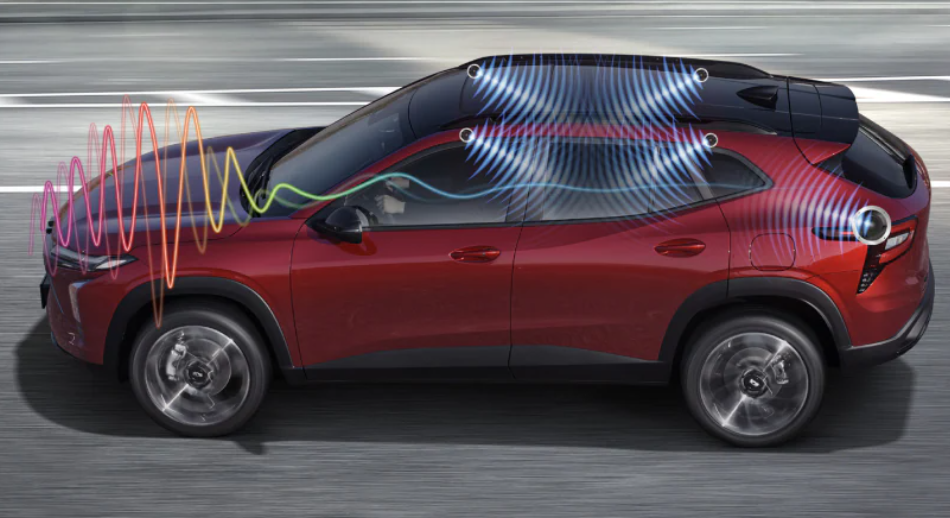 - 상기의 사진을 보시면 우측에 ANC인 액티브 노이즈 캔슬레이션이 적용된 모습을 보실 수 있는데요. 해당 기술은 주파수를 반대로 적용하여 엔진의 소음을 저감 시키는 기술로 차량의 정숙성을 유지하는데 도움이 되는 기술입니다.