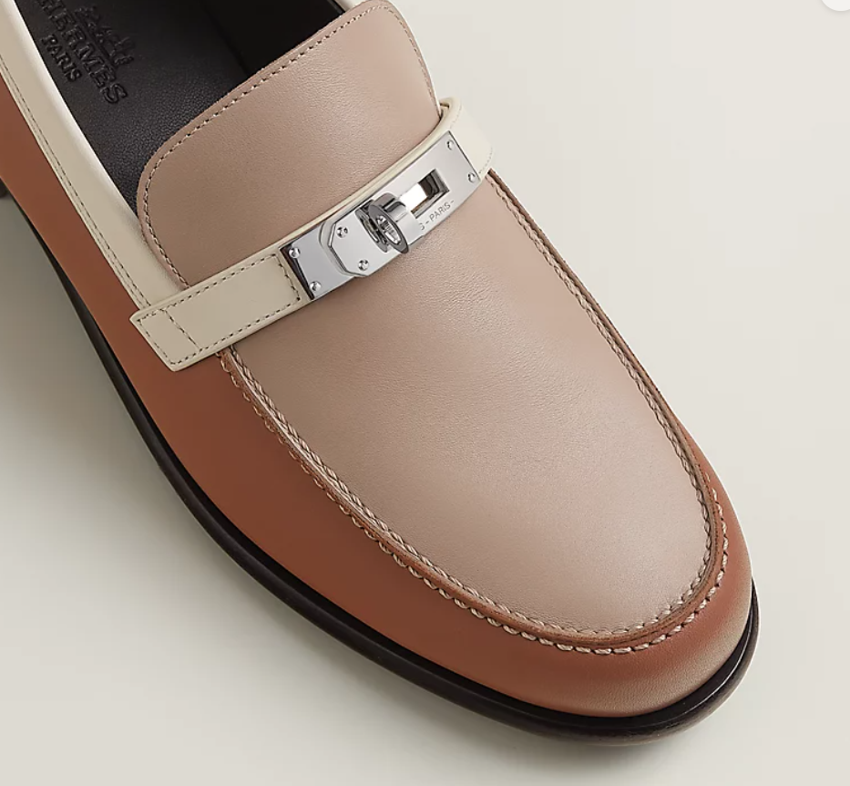 - 첫 번째로 살펴볼 제품은 바로 로퍼인데요. 로퍼는 그 자체만으로도 레이스업이나 끈, 버클 등이 없어도 편하게 신고 벗을 수 있는 장점이 있습니다. 에르메스 역시 이러한 별도의 번거로움 없이 편하게 신고 벗을 수 있는 로퍼를 출시했는데, 다만 기타 로퍼와의 차이점이라고 한다면 에르메스만의 켈리 버클이 들어갔다는 점입니다. 평소 에르메스를 좋아하시는 분들이라면 켈리백에 대해서도 알고 계실 테지만 모르시는 분들을 위해 간략히 설명드리면 에르메스의 켈리 버클이란 에르메스 제품이라는 것을 한눈에 식별할 수 있는 버클로 켈리백에서 영감을 받아 제작된 버클 장치를 의미합니다. 켈리 버클은 켈리 버클만의 독특하고 특유한 에르메스 고유 럭셔리한 느낌을 나타내는데요. 켈리 버클만의 클로징 버튼이 있어 손쉽게 신발을 신고 벗을 수 있습니다. 켈리 버클은 단지 버클로 존재하는 것이 아니라 에르메스의 역사가 담긴 정교한 가죽 공예 기술을 반영하여 제작되었기 때문에 존재만으로도 그 인기가 엄청나다고 할 수 있습니다.