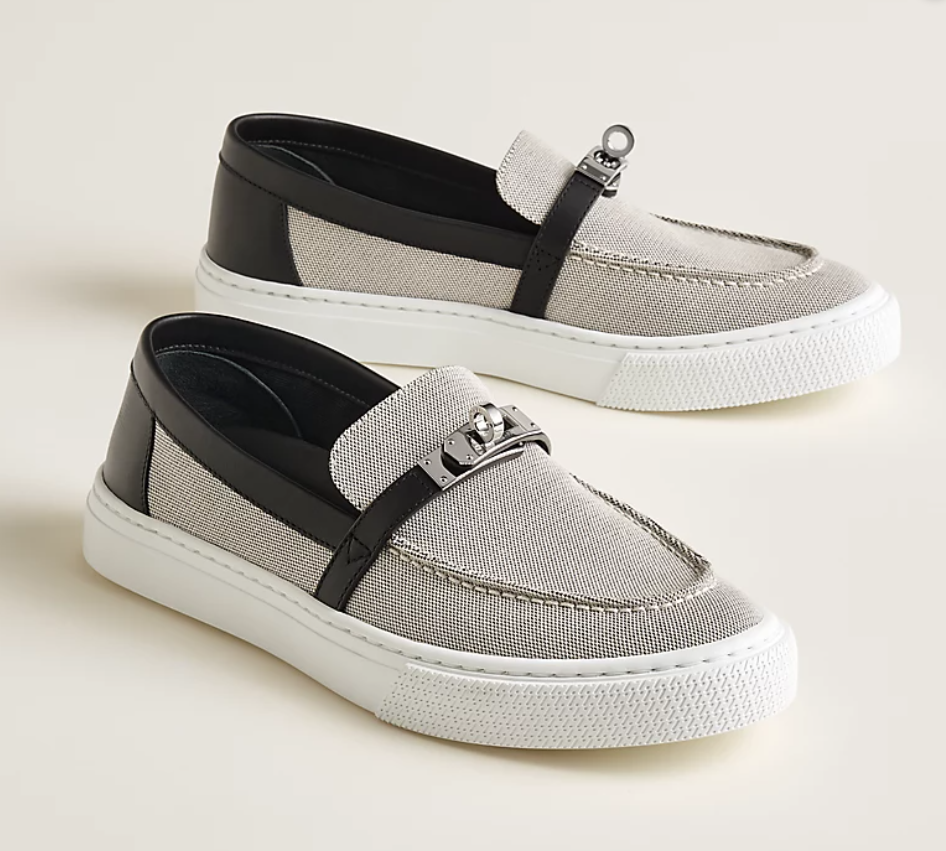 - 다음으로 소개해 드릴 제품은 에르메스 GAME 슬립온 스니커즈입니다. 단정하고 깔끔한 색상과 디자인부터 한눈에 시선을 끄는 스니커즈인데요. 에르메스의 슬립온 스니커즈는 로퍼 스타일로 신고 벗기도 상당히 편리한 스니커즈입니다. 색상과 재질도 다양하게 출시되고 있어 나만의 취향과 개성에 맞게 고를 수 있는데 일단 가을, 겨울 색상에 맞춰 깔끔한 색상으로 사진을 가지고 와봤습니다.