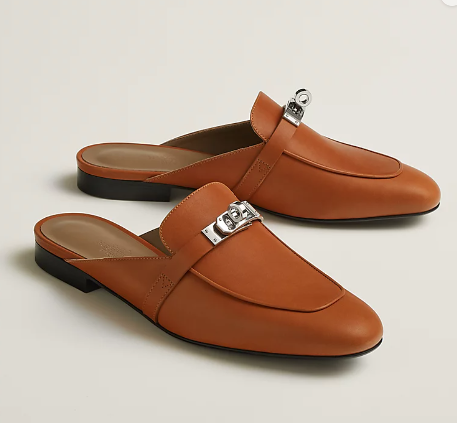 - 다음으로 소개해 드릴 제품은 뮬입니다. 신발처럼 생겼지만 뒷부분은 슬리퍼처럼 트여있어서 신고 벗기가 간편해 간단히 신을 수 있는 신발로 인기가 굉장히 많은 뮬인데요. 에르메스의 우아하고 깔끔한 Oz 뮬은 특히 고급스럽고 세련된 디자인으로 많은 사람들에게 인기가 있는 신발입니다.