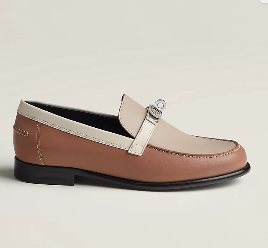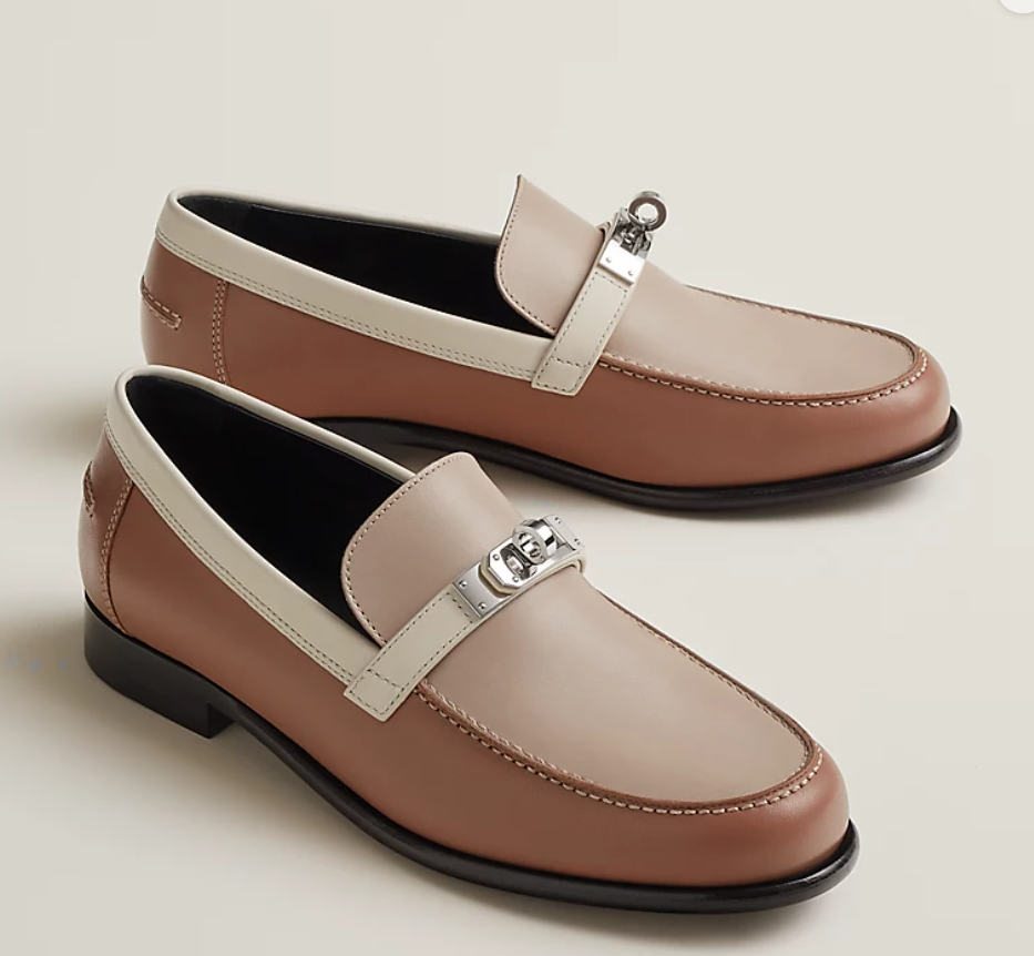 - 첫 번째로 살펴볼 제품은 바로 로퍼인데요. 로퍼는 그 자체만으로도 레이스업이나 끈, 버클 등이 없어도 편하게 신고 벗을 수 있는 장점이 있습니다. 에르메스 역시 이러한 별도의 번거로움 없이 편하게 신고 벗을 수 있는 로퍼를 출시했는데, 다만 기타 로퍼와의 차이점이라고 한다면 에르메스만의 켈리 버클이 들어갔다는 점입니다. 평소 에르메스를 좋아하시는 분들이라면 켈리백에 대해서도 알고 계실 테지만 모르시는 분들을 위해 간략히 설명드리면 에르메스의 켈리 버클이란 에르메스 제품이라는 것을 한눈에 식별할 수 있는 버클로 켈리백에서 영감을 받아 제작된 버클 장치를 의미합니다. 켈리 버클은 켈리 버클만의 독특하고 특유한 에르메스 고유 럭셔리한 느낌을 나타내는데요. 켈리 버클만의 클로징 버튼이 있어 손쉽게 신발을 신고 벗을 수 있습니다. 켈리 버클은 단지 버클로 존재하는 것이 아니라 에르메스의 역사가 담긴 정교한 가죽 공예 기술을 반영하여 제작되었기 때문에 존재만으로도 그 인기가 엄청나다고 할 수 있습니다.