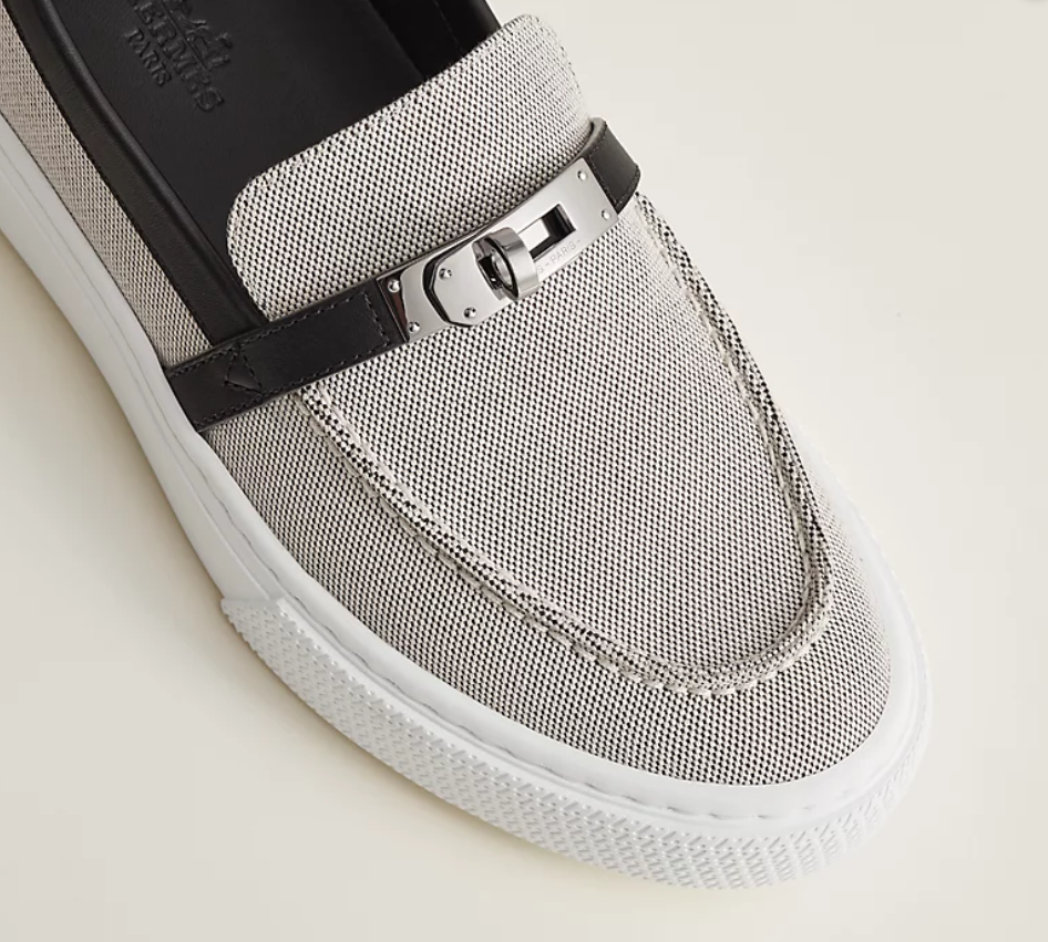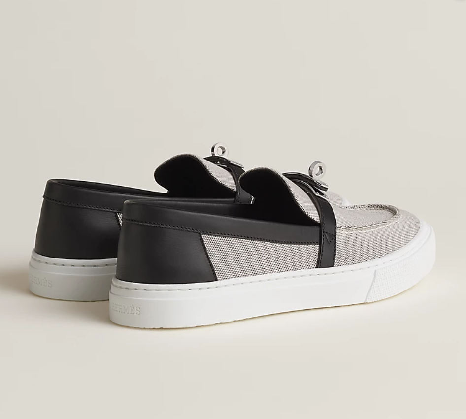 - 다음으로 소개해 드릴 제품은 에르메스 GAME 슬립온 스니커즈입니다. 단정하고 깔끔한 색상과 디자인부터 한눈에 시선을 끄는 스니커즈인데요. 에르메스의 슬립온 스니커즈는 로퍼 스타일로 신고 벗기도 상당히 편리한 스니커즈입니다. 색상과 재질도 다양하게 출시되고 있어 나만의 취향과 개성에 맞게 고를 수 있는데 일단 가을, 겨울 색상에 맞춰 깔끔한 색상으로 사진을 가지고 와봤습니다.