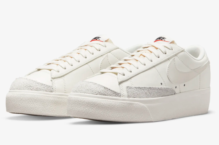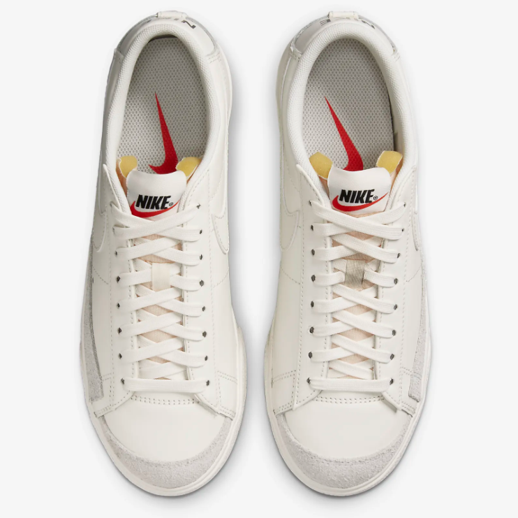 - 두번째로 소개해 드릴 제품은 나이키 블레이저 로우 플랫폼입니다. 옆면에서 보면 에어포스와 같은 단순하면서도 간결한 라인이 돋보이고 위에서 보면 스니커즈와 같은 형태로 얄팍한 모양이 굉장히 매력적인 제품인데요. 현재 나이키 공홈 베스트셀러에 자리를 하고 있는 제품입니다.