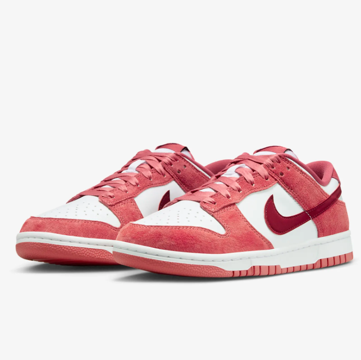 - 이 제품 같은 경우 이번에 발렌타인 데이를 맞아 출시된 스페셜 에디션인데요. 덩크의 빈티지한 스타일에 밸런타인을 맞아 핑크 색상을 입힌 너무 세련되고 귀여운 스타일의 신발로 착용할수록 부드러워지는 소재의 특성 덕분에 발도 편안하게 신을 수 있습니다. 기본적으로 고무 밑창이 내구성과 접지력을 제공해 주기 때문에 미끄럼 방지도 가능한 제품입니다. 평소 핑크홀릭이시라면 강력 추천해 드립니다.