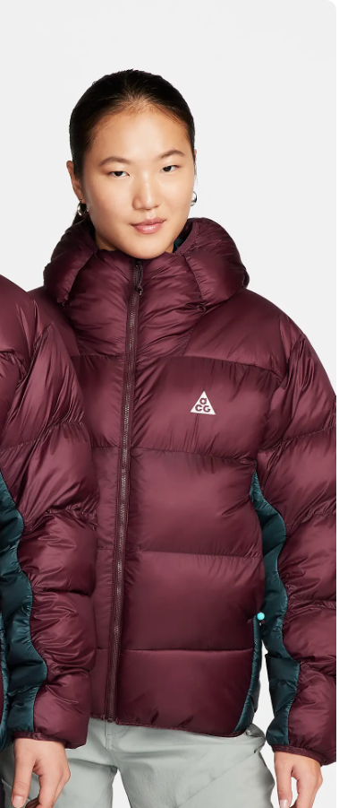 - 색상은 사진에서 보시는 마룬컬러가 가장 인기가 많은데요. 실제로 보면 너무너무 이쁜 색상이고 컬러 자체가 굉장히 딥한 마룬컬러이기 때문에 여성분들이 입었을 때 얼굴이 하얗고 뽀얗게 보이는 효과도 있어 많이 선호하는 편입니다. 두툼하고 보온성도 굉장히 좋지만 가볍기도 가벼워 입었을 때 부담이 없어 데일리용으로 정말 좋고요. 100% 재생섬유로 친환경 소재를 활용했기 때문에 환경적인 측면에서도 의미가 있습니다. 보온성에 있어서는 나이키가 아이슬란드까지 방문해 개발한 패딩이기 때문에 확실하다고 보시면 좋을 것 같습니다. 가격은 405,000 원입니다.