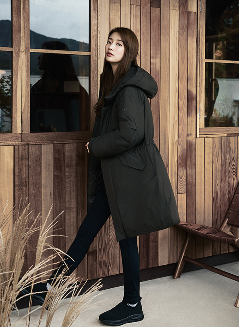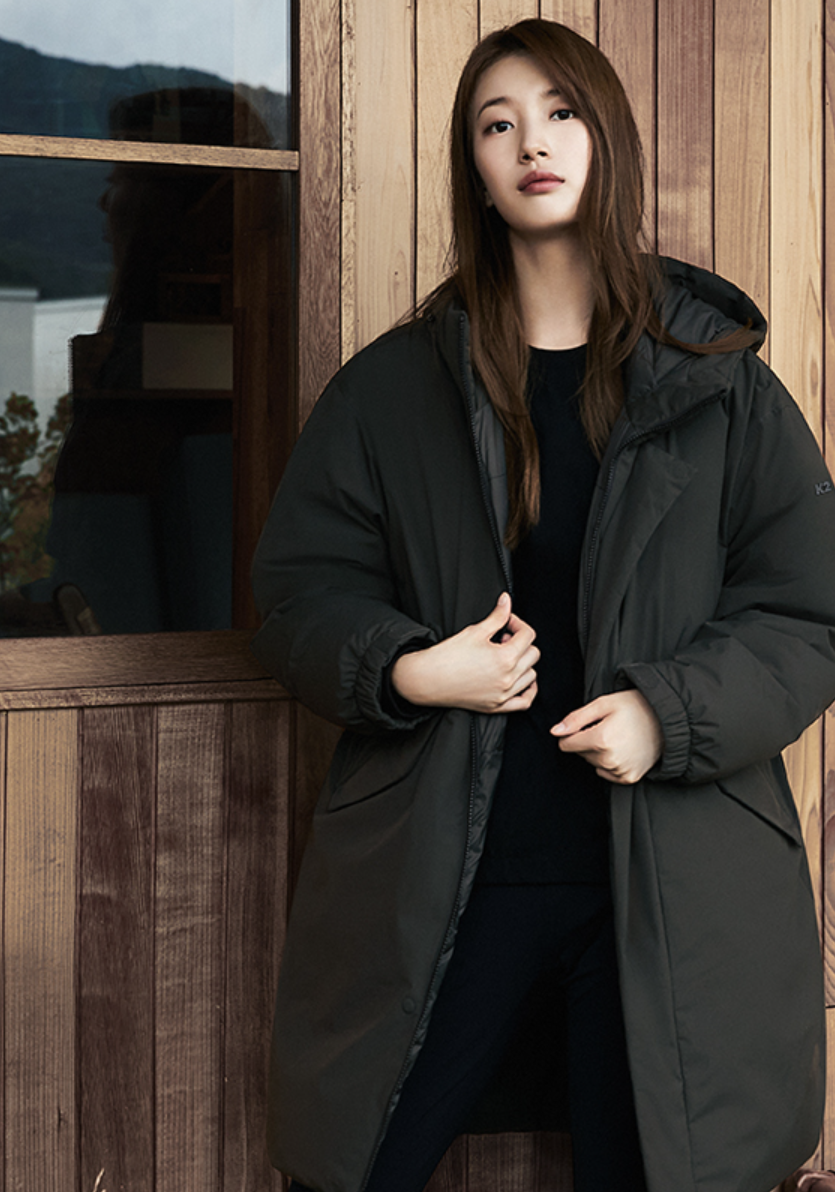 - 두 번째로 소개해 드릴 제품은 K2의 씬에어입니다. 배우 수지 씨가 모델로 나와 더욱 화제가 되고 인기도 많은 롱패딩인데요. K2는 등산 용품에 관해 전문 브랜드인 만큼 기능성이나 디자인 모두 잡은 롱패딩이라고 할 수 있고, 역시나 가볍고 보온성이 좋아 인기가 많은 패딩입니다.