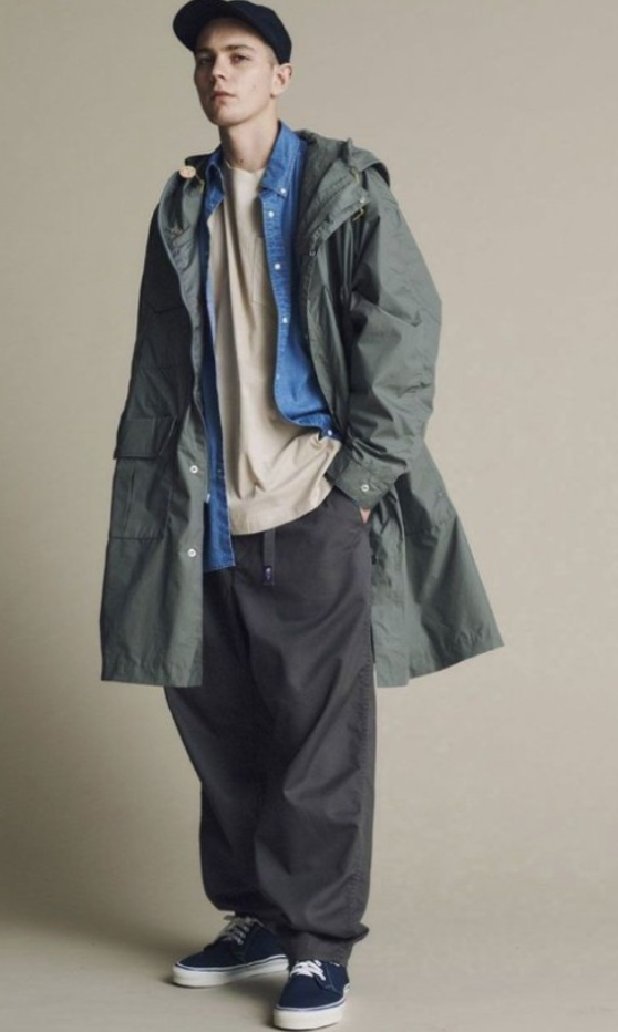 두번째로 워크웨어가 있습니다. 워크웨어는 영어 단어 그대로 일을 할 때 입는 옷을 의미하는데요. 지금과 같이 디지털 문명이 발달하기 전인 19세기에는 노동을 주로 하는 일들이 많았기 때문에 튼튼하고 오염에 강한 옷이 필요했고, 이때 노동자들이 입던 옷들을 워크웨어라고 합니다. 이렇게 튼튼하고 이염에 강한 옷들의 대표적인 소재로는 데님, 캔버스 등이 있고 이러한 재질로 만들어진 옷을 입는 패션을 워크웨어 패션이라고 합니다. 워크웨어 역시 아메카지룩의 대표적인 종류 중 하나입니다.