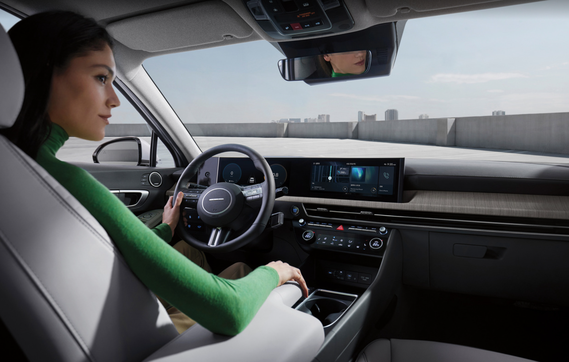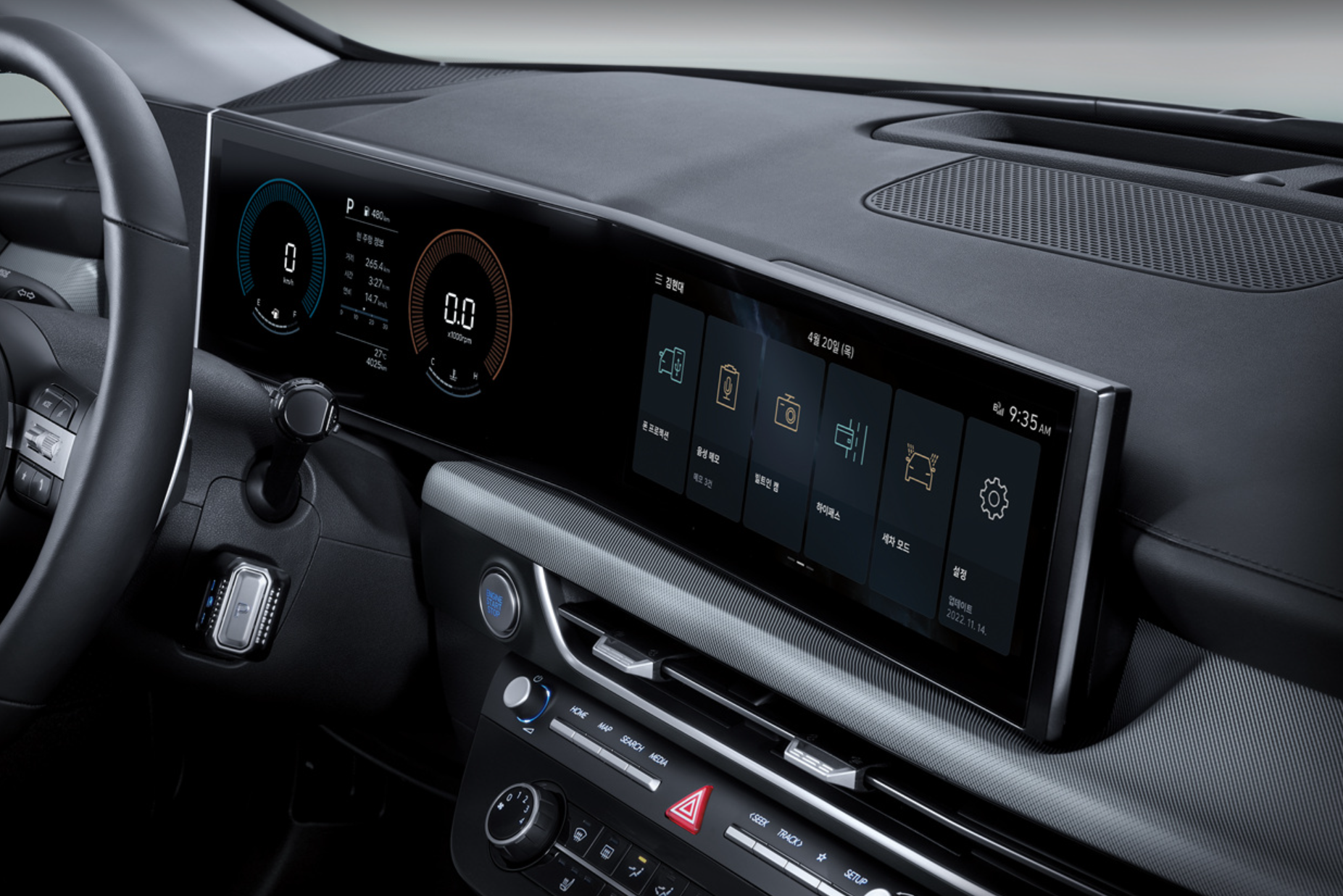 - 특히나 커브드에서 알 수 있듯이 운전자를 감싸고 있는 듯하게 굴곡져 있어서 운전자를 감싸고 있는 듯한 안락함과 함께 고급스럽고 세련된 인테리어에도 한 몫 하고 있습니다. 참고로 현대차 최초로 적용되었습니다.