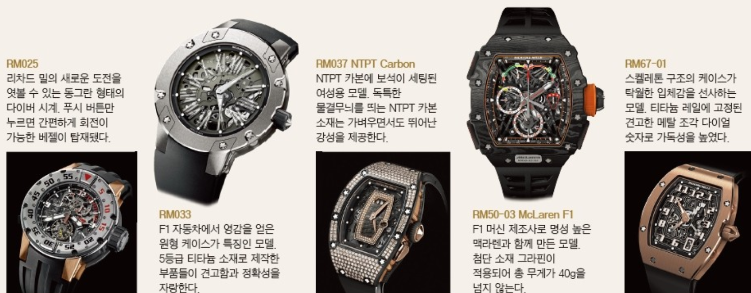 리처드 밀은 포브스코리아에서 '한국인이 선호하는 최고급 시계 브랜드'에 선정되기도 했던 브랜드인데요. 위에서 말씀드린 지드레곤이나 양현석, 배용준과 같은 거물급 연예인들이 주로 착용하면서 더 화제가 되기도 했어요.