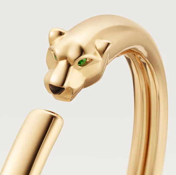 - 표범은 사실 까르띠에를 상징하는 동물과도 같습니다. 각 브랜드마다 상징적인 동물이 하나씩 있듯이 까르띠에는 표범의 상징성을 내세워 팬더 드 까르띠에 시리즈를 출시했고요. 표범이 역동적으로 달리는 모습에서 용맹함과 유연함, 신비스러움을 제품에 나타내고자 했습니다. 실제로 팔찌에서도 표범의 역동적인 모습을 느낄 수 있고 살아있는 듯한 디테일이 제품을 더욱 매력적으로 보이게 만들어줍니다.