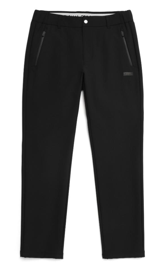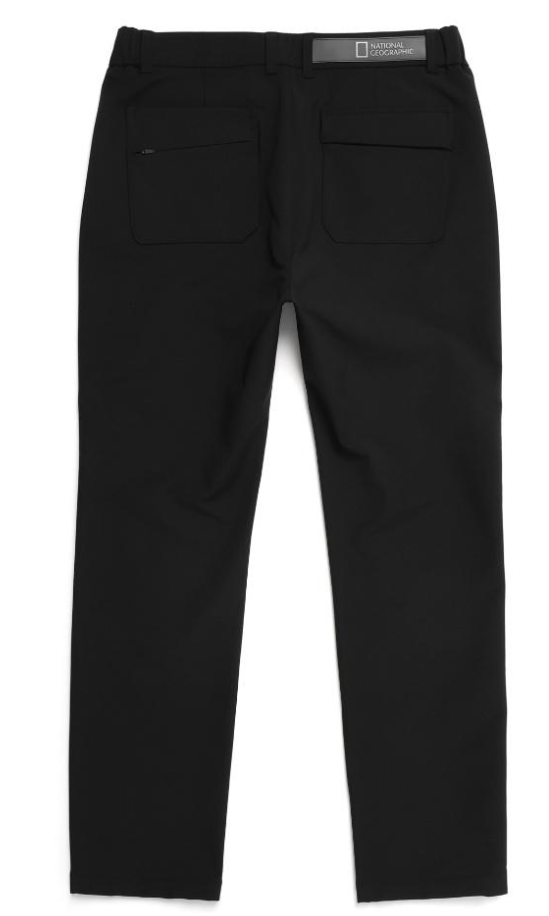 - 네 번째로 소개해 드릴 제품은 내셔널지오그래픽 어패럴의 고신축 스트레치 기모본딩 베이직 팬츠입니다. 색상은 카본 블랙과 다크 그레이 두 가지로 출시되고 있구요. 트레이닝과 바지의 중간 정도라고 생각하시면 되는데, 디자인은 바지처럼 되어 있지만 활동성은 트레이닝복과 같이 편안한 제품입니다.