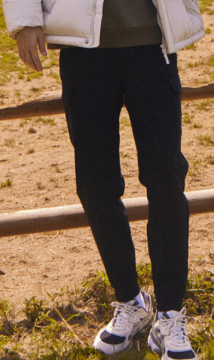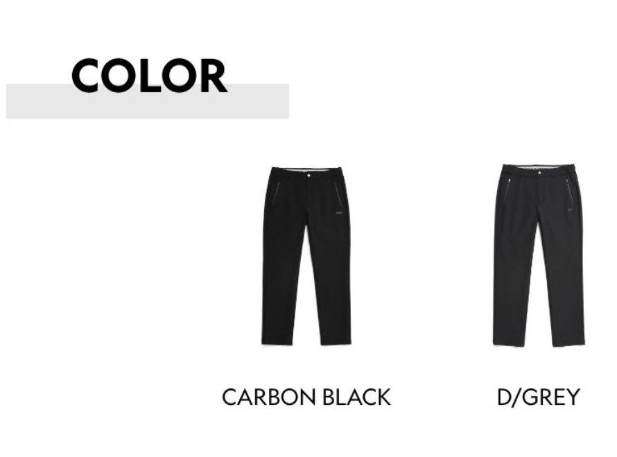 - 우선 소재가 명칭에 나와있듯이 고신축 스트레치 기모본딩으로 되어 있어 발수 기능과 스트레치성이 굉장히 우수한데요. 이러한 장점으로 인해 일상복에서도 또 야외 운동을 할 때도 편안하게 입을 수 있는 제품이구요. 전체적으로 미니멀한 실루엣에 뒷쪽 아웃포켓 디테일이 매력적인 제품입니다. 보온성과 활동성을 겸비한 바지로 겨울철 편안하게 입을 수 있는 기모 바지입니다.