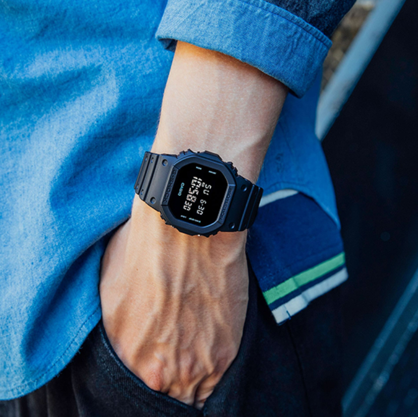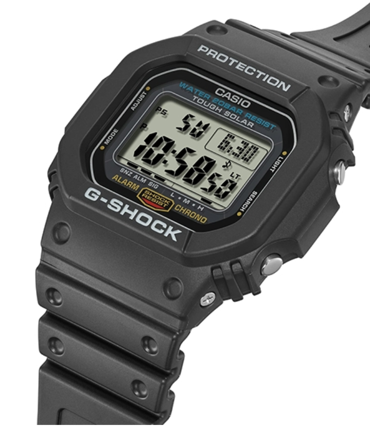 첫번째로 추천해 드릴 제품은 G-5600UE-1DR입니다. 아마 평소에 시계를 좋아하시는 분들이라면 굉장히 익숙한 디자인이실 텐데요. 초기 G-shock의 디자인을 그대로 계승한 모델이에요.