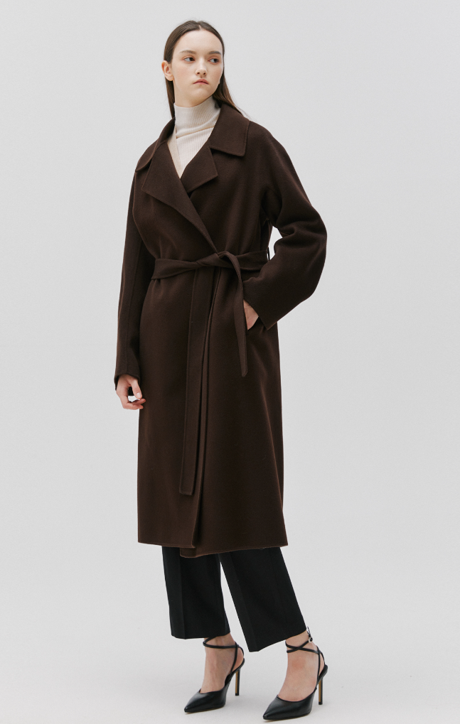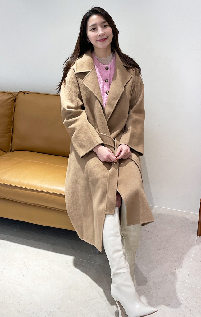 - 간혹 소매길이가 어중간한 코트가 있으면 입고 다니기가 상당히 불편할 때도 있는데 이 제품은 소매 길이도 정말 정확하게 딱 떨어져서 좋고요. 허리춤에 끈을 풀어도 이쁘고 묶어도 이쁜 제품입니다. 캐시미어가 들어갔기 때문에 소재 자체가 굉장히 부드러워서 평소 부드러운 코트 재질을 선호하시는 분들에게 정말 좋은 제품입니다.