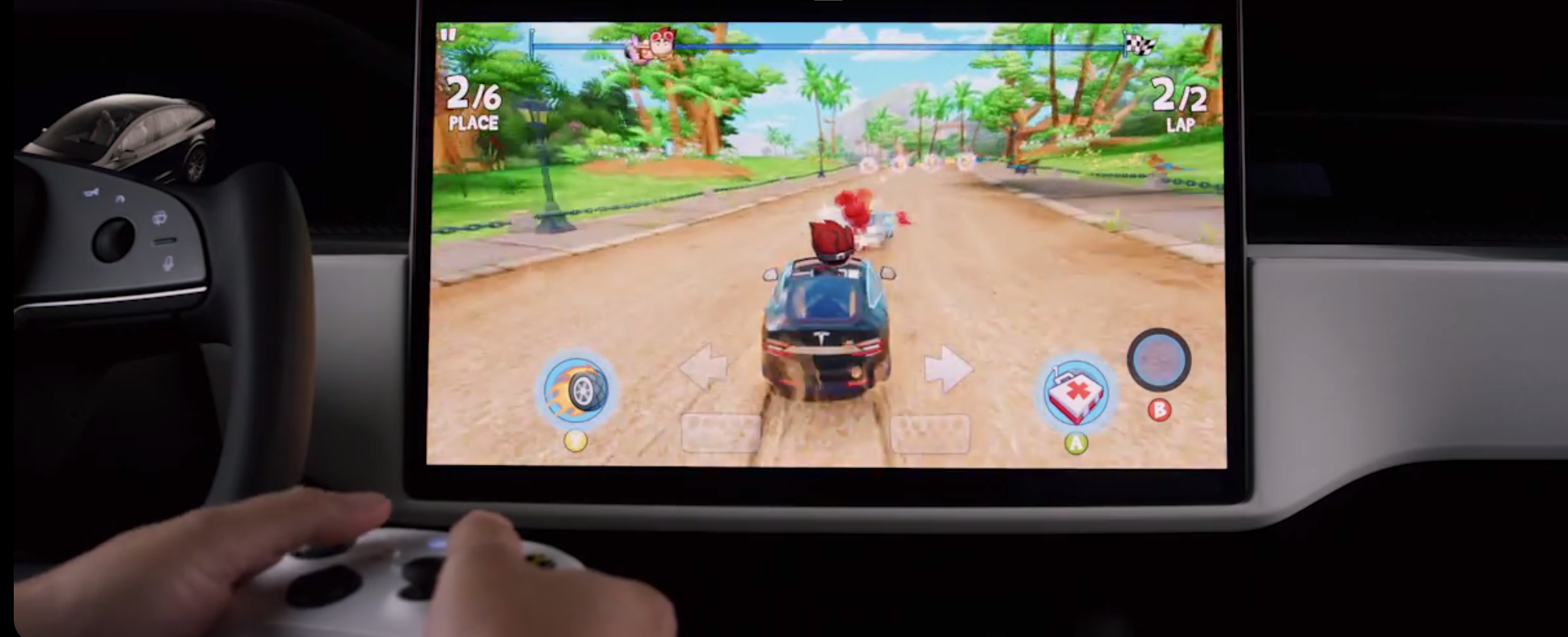 - 개인적으로 굉장히 재미있는 부분인데, 테슬라 모델X는 실내에서 콘솔 게임을 즐길 수 있습니다. 최대 10 테라플롭스(Teraflops)의 처리 성능을 통해 최신 콘솔 게임기와 동일한 수준의 게임을 차량 내에서 즐길 수 있습니다. 전 좌석에는 무선 컨트롤러와 헤드셋을 연결하여 보다 실감나는 게임을 즐길 수도 있습니다.