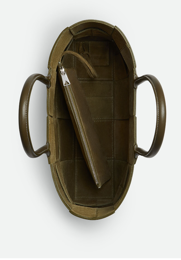 - 아르코 토트 역시 보테가베네타의 시그니처라고 할 수 있는 인트레치오 위빙 방식으로 제작된 토트백이고요. 우드/내추럴 색상과 머드 색상 두 가지 중 고를 수 있는데, 두 가지 색상 모두 고풍스럽고 멋스러운 분위기를 연출하기 좋아 많은 분들에게 인기가 많습니다.