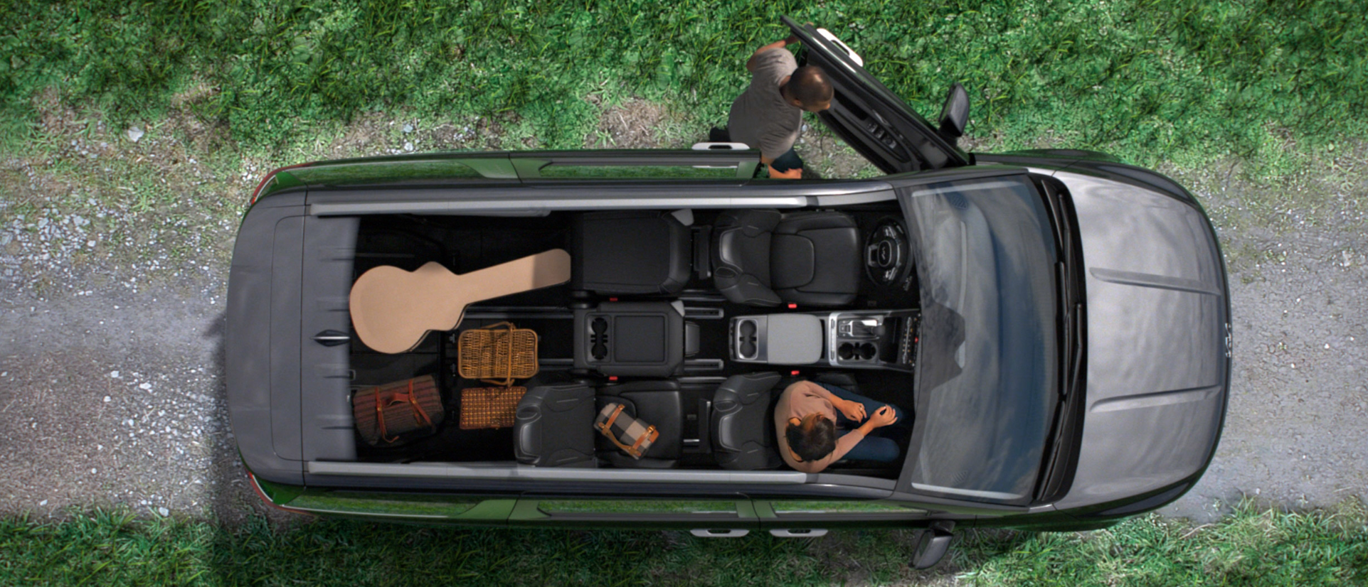 - 그림에서 보시는 것처럼 탈착식 2열 시트와 3열 싱킹 시트 등 시트를 움직이기 편리하기 때문에 가족 구성원의 짐을 싣거나 화물을 적재할 때 여유롭게 할 수 있다는 장점이 있습니다. 특히 사이드 도어와 테일게이트를 원터치로 여닫을 수 있기 때문에 양손에 짐을 들고 있어도 다가가기만 하면 열려 상당히 편리합니다.