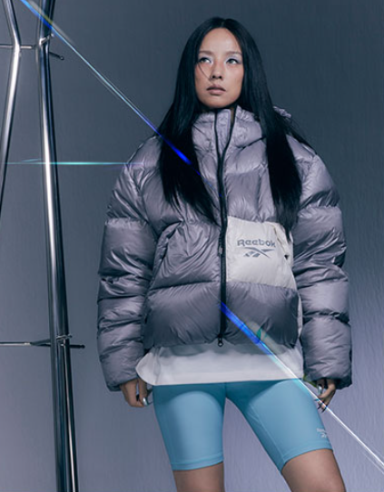 - 다음으로 리복은 정말 고유의 헤리티지를 가지고 있죠? 리복 고유의 헤리티지와 이효리 씨의 스포티하고 액티브한 트렌디함이 어우러지면서 너무 이쁜 패딩입니다. 유니섹스 아이템으로 남녀노소 상관없이 입을 수 있는 패딩이기도 합니다.