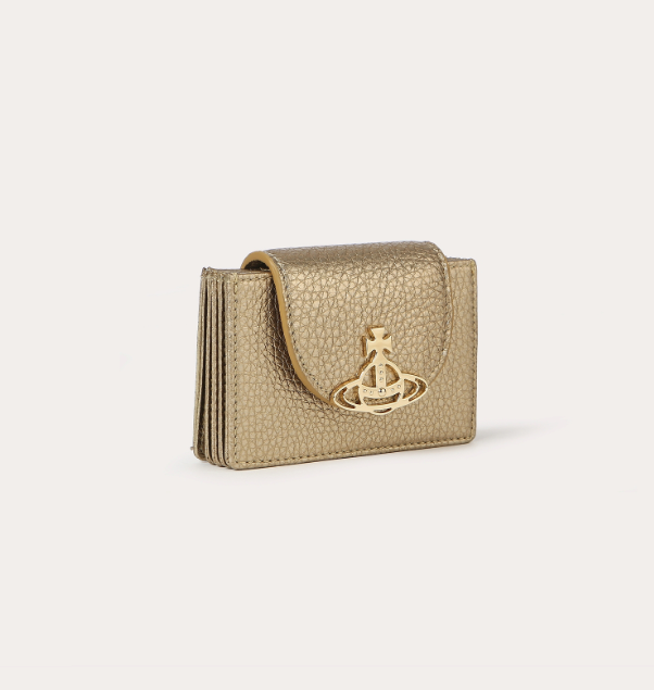 - 오늘 소개해 드릴 그레인 레더 플랩 카드지갑 역시 이러한 비비안웨스트우드의 철학에 영향을 받았다고 볼 수 있는데요. 카드 레더에 시그니처 공법을 더해 포인트를 준 제품으로 메탈 ORB 포인트가 매력적인 지갑이라고 할 수 있습니다. ORB는 가운데 있는 원형의 로고를 의미합니다.
