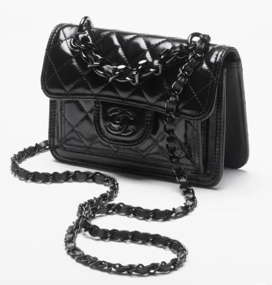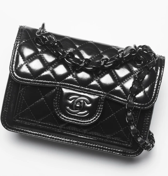 - 다음으로 소개해 드릴 제품은 샤넬 미니 플랩백 입니다. 사진만 봐도 번쩍번쩍 광이 나는 것이 느껴지는 가방이죠? 이번에 신상으로 나온 샤넬 미니 플랩백은 유광 크럼플드 카프스킨으로 제작되었는데요. 유광은 말 그대로 광이 나는 것을 의미합니다. 그럼 크럼플드 카프스킨이란 무엇일까요? 카프스킨은 송아지 가죽이고, 크럼플드(crumpled)는 한글로 해석하면 '구겨진'이라는 의미입니다.