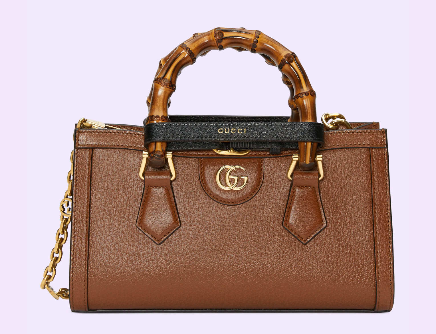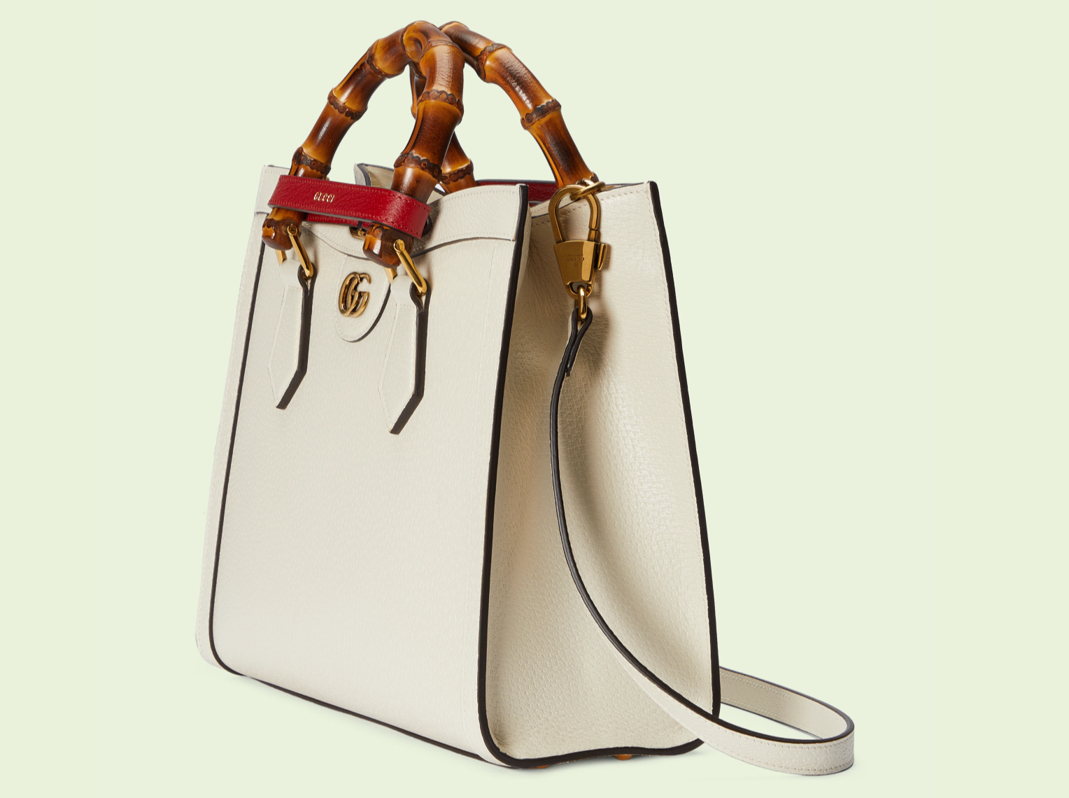 - 세 번째로 추천해 드릴 제품은 구찌 다이애나 미디엄 토트백입니다. 역시나 뱀부 손잡이와 더블 G의 디테일이 돋보이는 가방인데요. 뱀부 핸들과 긴 스트랩 핸들로 다양하게 활용할 수 있는 가방입니다.