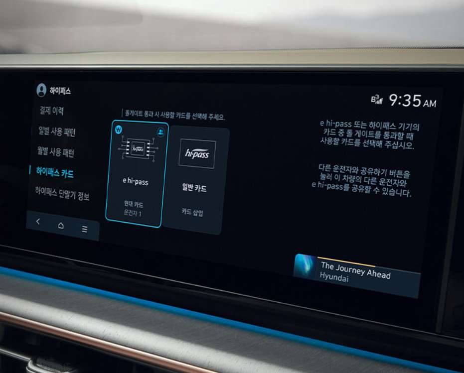 - 12.3 인치 내비게이션에서 하이패스의 사용 내역과 잔액 등을 확인할 수도 있습니다.