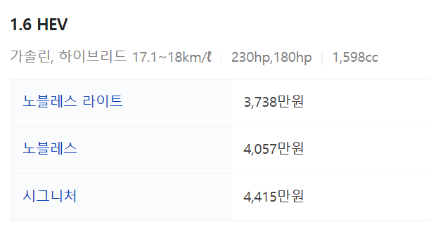 - 연료 : 가솔린, 하이브리드