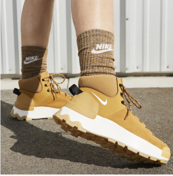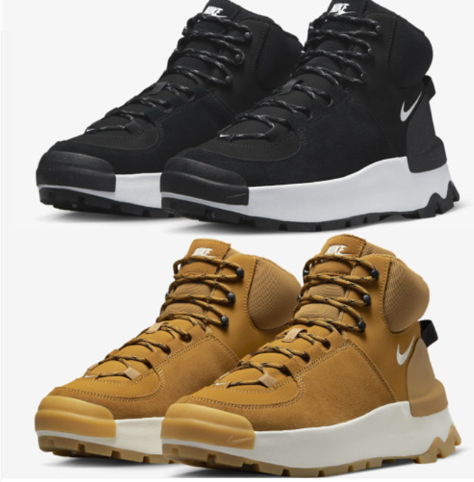- 다음으로 소개해 드릴 제품은 나이키 시티 클래식 부츠인데요. 디자인이나 컬러감이 너무나도 이쁜 신발이기 때문에 인기가 많은 등산화 중 하나이고, 뛰어난 디자인으로 일상룩에도 즐겨 신을 수 있어 데일리용으로도 자주 애용되고 있는 등산화입니다. 얼핏 보면 약간 어글리 슈즈 같은 느낌인데 아무 데나 잘 어울려서 코디하기가 굉장히 좋습니다.