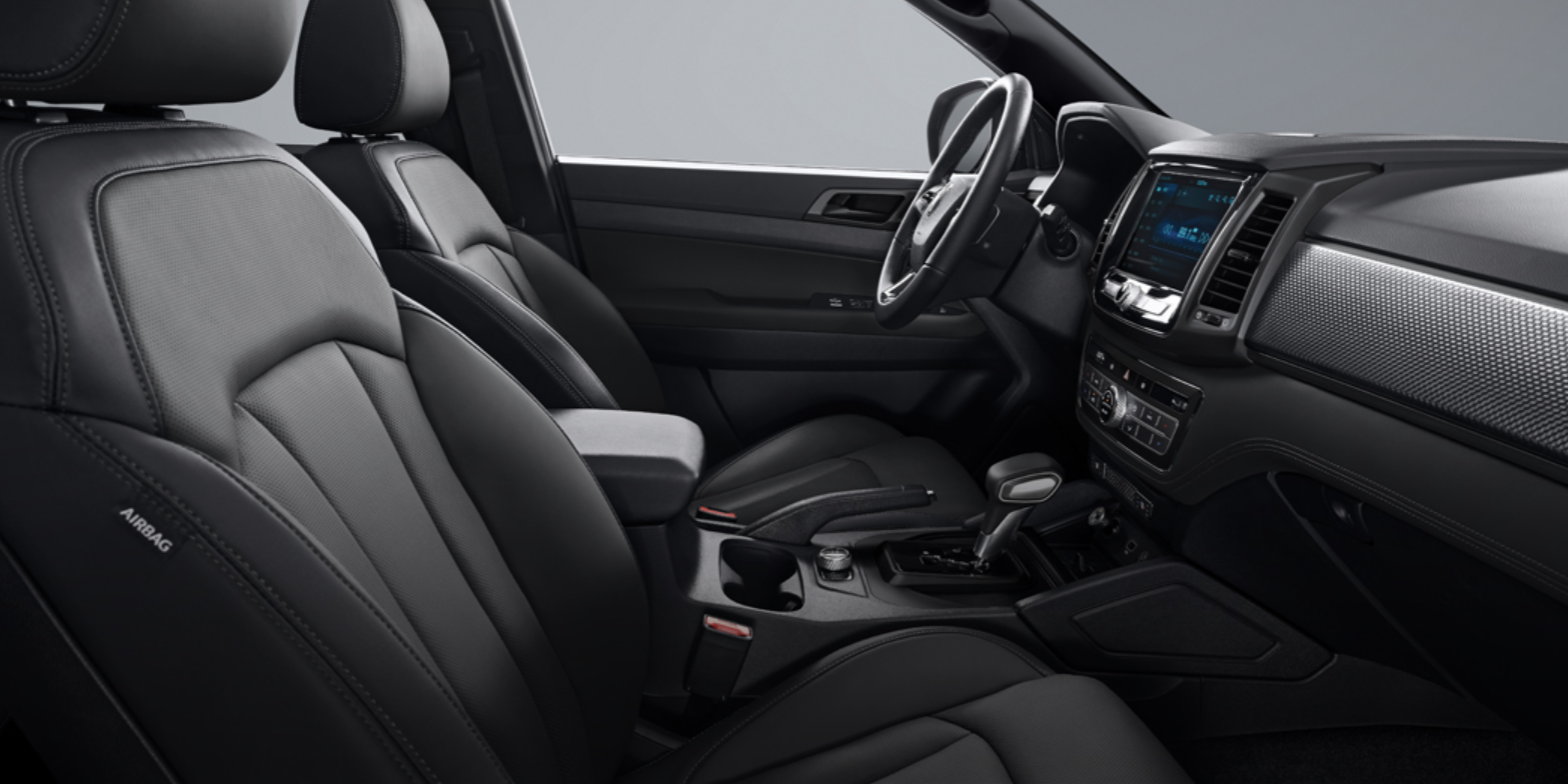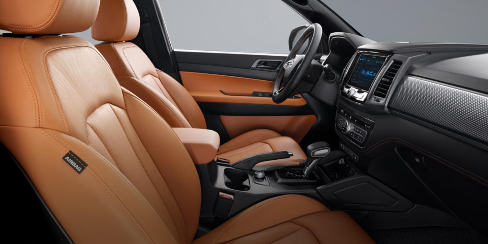 - 시트에는 고급 나파 가죽이 적용되어 심플하고 모던하면서도 고급스러운 느낌을 주는 동시에 장거리 운행도 편안하게 갈 수 있습니다. 2열 공간의 레그룸과 헤드룸도 넉넉한 편이며 실내 공간만 딱 놓고 봤을 때는 픽업 트럭보다는 현대나 기아의 준중형 SUV와 다를바가 없다는 생각이 들 정도로 실내 인테리어에 신경을 많이 썼습니다.