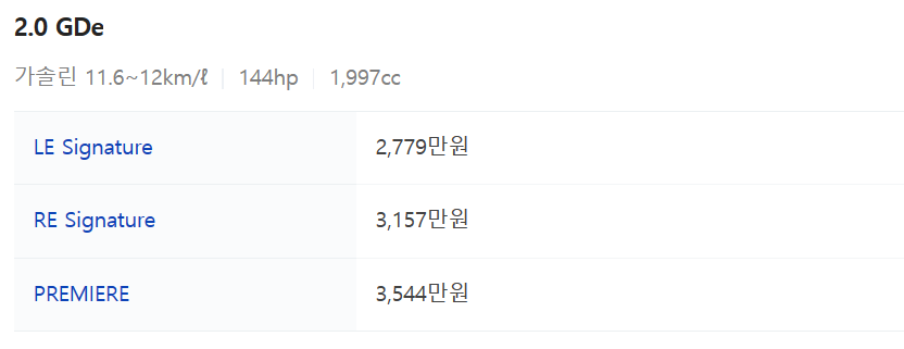 - 출력 : 140 ~ 184hp 엔진