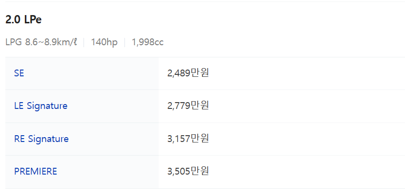 - 연료 : LPG, 가솔린, 디젤