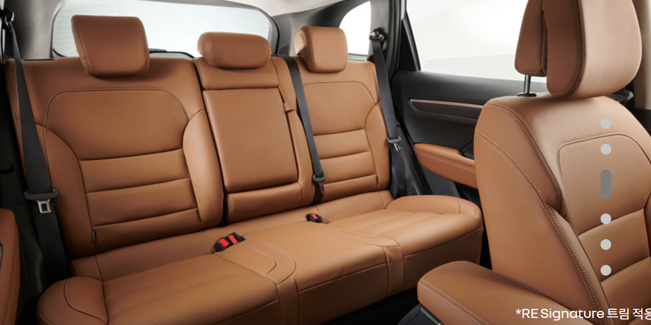 - QM6의 내부는 모던 브라운 시트 가죽으로 고급스러운 유럽의 감성을 고스란히 전해주는 동시에 뒷좌석 리클라이닝 시트는 최대 32도까지 등받이 각도를 조절할 수 있어 주행 중 편안하게 갈 수 있는 장점이 있습니다. 뒷좌석의 무릎 공간 또한 289mm로 넉넉한 편입니다.
