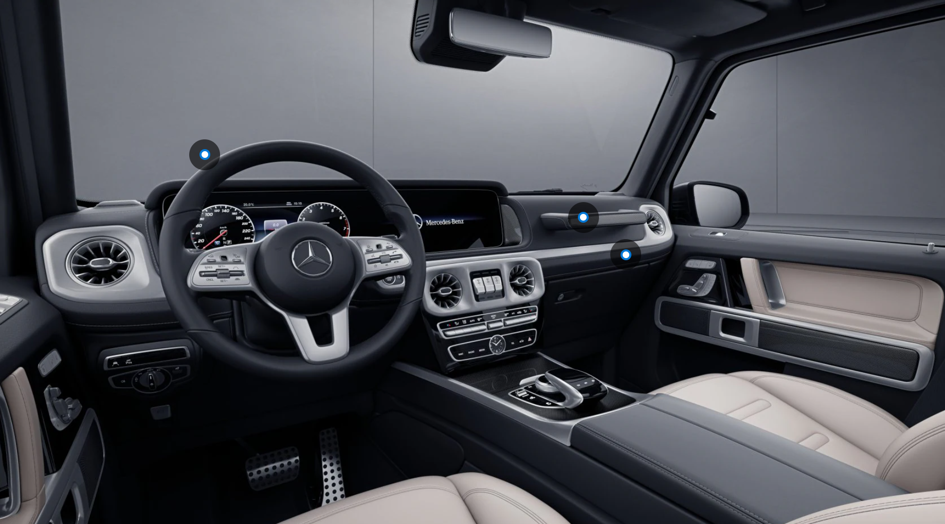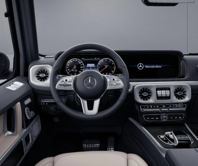 - 2023 메르세데스-벤츠 G클래스의 각지고 강인하며 투박한 외관과 달리 실내는 역시나 벤츠 다른 모델과 마찬가지로 최첨단의 모습을 하고 있습니다. 벤츠에서 최첨단 실내 기술을 자랑하는 와이드 콕핏 인터페이스는 물론이고 터빈 블레이드를 형상화하고 있는 에어밴트, 다양한 색상을 지니고 있어 운전자의 재미를 더해주는 앰비언트 라이트, 최적의 착좌감을 제공해 주는 전동 시트 등은 기존 벤츠의 타 모델과 비슷한 모습을 지니고 있습니다.