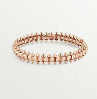 - 클래쉬 더 까르띠에는 사진에서 보시는 것처럼 징 스터드가 특징이라고 할 수 있는데요. 내부는 또 부드러운 라운드 모양으로 둥글둥글한 사각 쉐입이 반복적으로 배치되어 있습니다. 즉 뾰족함과 둥그스름한 모양이 서로 조화를 이루고 있는 모습이라고 할 수 있는데요. 이는 마치 강인함 속에 부드러움을 상징하는 것과 같습니다. 실제 까르띠에에서 애초에 클래쉬 더 까르띠에를 기획할 때 서로 상반된 이미지가 하나로 조합되면서 조화를 이루는 것을 추구했기 때문에 오묘하고 독특한 조화의 매력을 느낄 수 있는 팔찌입니다.