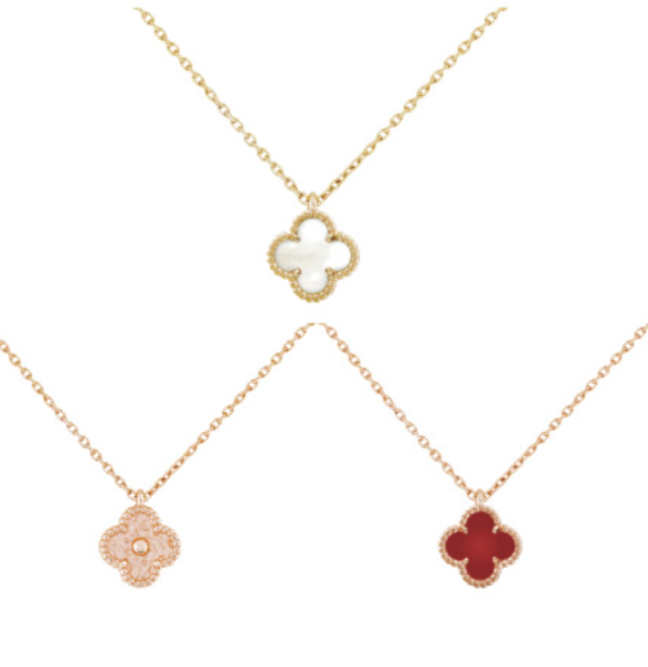 - 반 클리프 앤 아펠은 자연을 모티브로 해서 자연친화적인 디자인이 상당수 분포되어 있고, 평소 자연친화적인 디자인을 좋아하시는 분들께는 꼭 추천해 드리고 싶은 브랜드 인데요. 특유의 서정성과 세련된 감각으로 디자인을 만들기로 유명합니다. 반클리프 앤 아펠의 라인업이 모두 유명한 편이지만 그 중에서도 행운을 상징하는 네잎클로버와 고급스러운 자개로 가장 많은 사랑을 받고 있는 대표 모델이 알함브라 모델이고 인기가 가장 많습니다. 사진에서 보시는 것처럼 깔끔하고 단정한 네잎클로버 모양으로 많은 사랑을 받고 있습니다. 펜던트는 스위트, 빈티지, 퓨어, 매직 순서로 점점 커지면서 라인업이 나누어지구요. 가장 대중적으로 사용하는 사이즈는 빈티지 입니다.