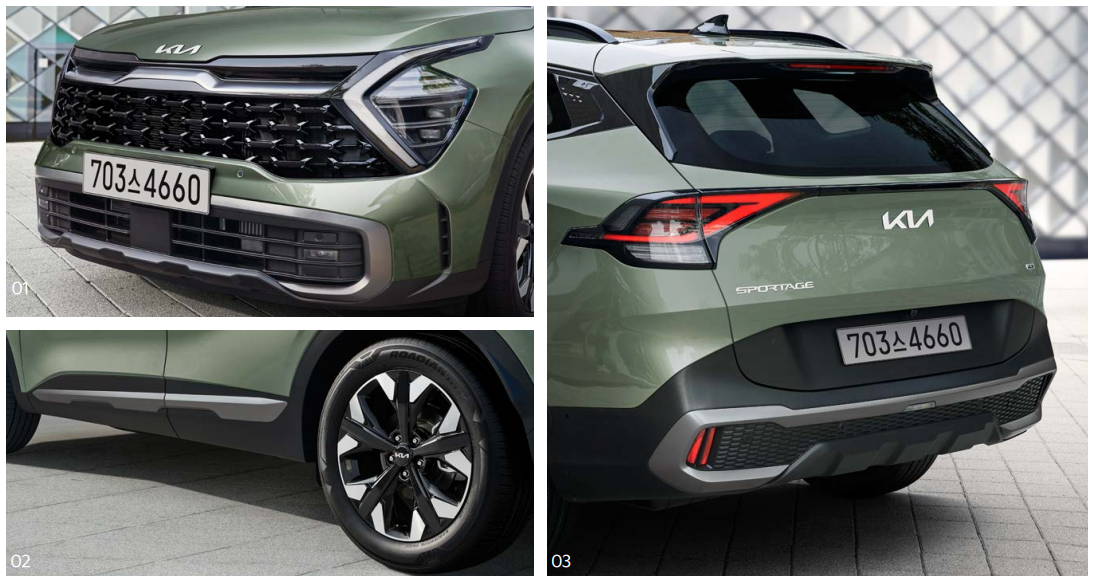 - 2023 스포티지 그래비티에는 라디에이터 그릴, 그릴 어퍼 가니쉬, 프론트 범퍼, LED 포그램프, 도어 가니쉬, 19인치 전면가공 휠, 리어 범퍼, 루프랙, 서라운드 몰딩, 필라 가니쉬, 아웃사이드 미러 커버 등이 추가, 변경되었습니다.