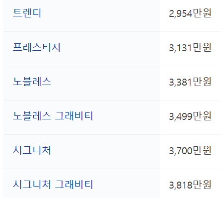- 가격: 2,474 ~ 3,818 만원