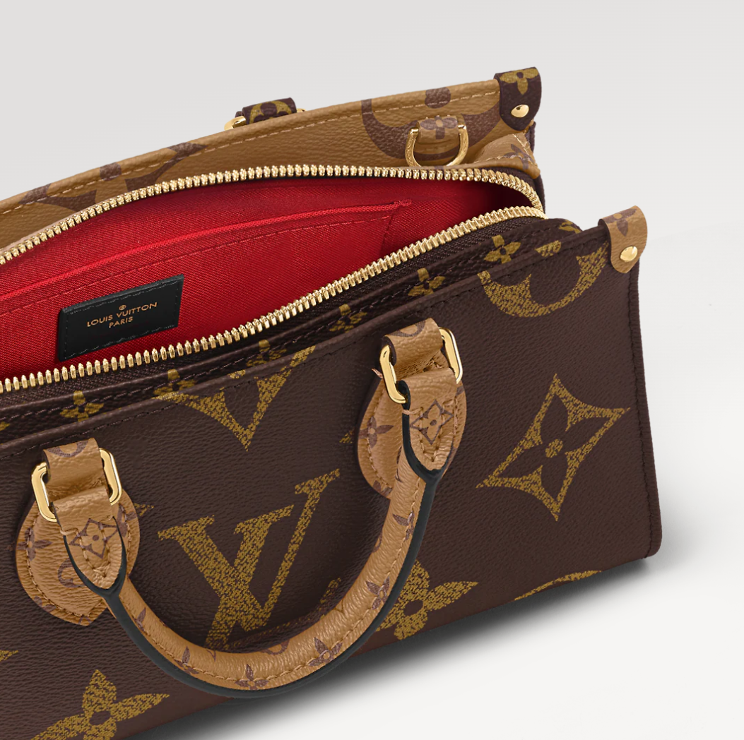 - 첫 번째로 소개해 드릴 제품은 루이뷔통 온더고 이스트 웨스트 입니다. 루이비통 특유의 모노그램이 돋보이는 신제품인데요. 가방만 얼핏 보면 루이비통 기존 스타일을 그대로 유지하는 것 같지만 스트랩이 붙으면서 완전히 새롭게 재해석된 가방입니다.