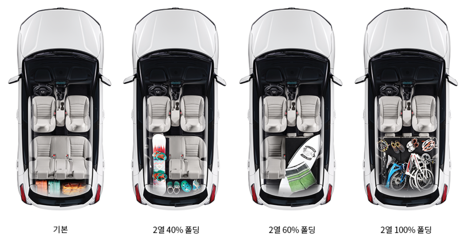 - 티볼리 에어의 2열 레그룸 또한 여유로운 공간감을 자랑합니다. 성인 신장 180cm의 탑승객이 앉아도 여유있는 레그룸과 헤드룸을 확보할 수 있습니다. 만약 2열을 폴딩하면 무려 1,440L나 되는 여유공간을 추가로 확보할 수 있으며 성인이 누워도 넉넉한 1,900mm의 공간을 자랑합니다.