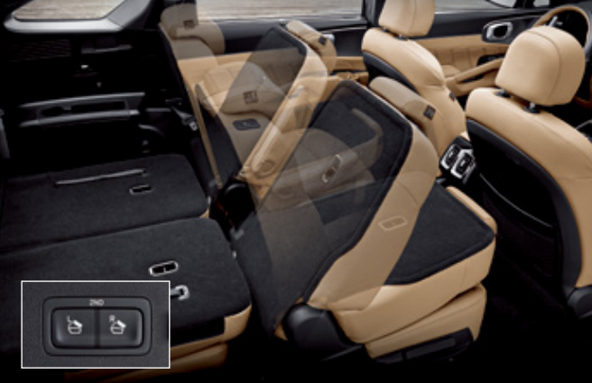 - 특히 2열 원터치 폴딩 시스템은 넓은 공간을 활용할 수 있도록 도와줍니다. 러기지 우측 사이드에 적용된 전자식 폴딩 스위치로 2열 시트를 폴딩 하여 큰 사이즈의 화물 적재와 수납이 원활할 수 있도록 도와줍니다.