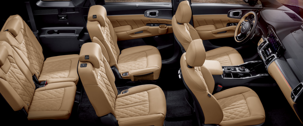 - 쏘렌토 디자인의 절제미나 세련미는 외관에서뿐만 아니라 실내에서도 물씬 느낄 수 있는데요. 고급스러운 브라운 시트는실내에 세련미와 고급스러운 느낌을 더해줄 뿐만 아니라 널찍한 공간은 온 가족이 쾌적하게 탑승하기에도 충분한 편안한 좌석을 제공해 줍니다.