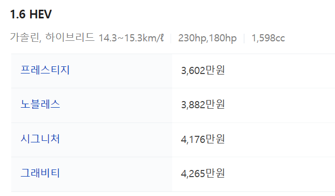 - 연료 : 가솔린, 하이브리드