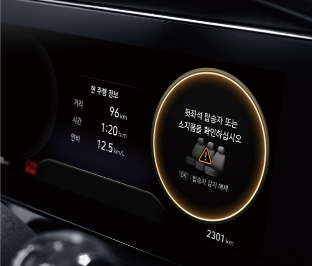 - 맨 왼쪽 그림을 보시면 통합주행모드 시스템으로 운전자의 취향에 따라 주행 특성이 변화하는 다양한 주행 모드를 선택할 수 있습니다. 또한 중앙의 그림은 후석 승객 알림 기능인데요. 아이나 강아지를 키우시는 분들에게는 특히나 상당히 유용한 기능입니다. 너무 정신이 없어 깜빡하고 아이나 강아지를 두고 내릴 일이 없어지기 때문입니다. 따라서 차에서 일어날 수 있는 어떠한 사고를 방지할 수 있습니다. 오른쪽은 에어백 시스템으로 총 8개의 8에어백 시스템이고, 에어백 시스템으로 전방위 충돌 안전성을 확보했습니다.