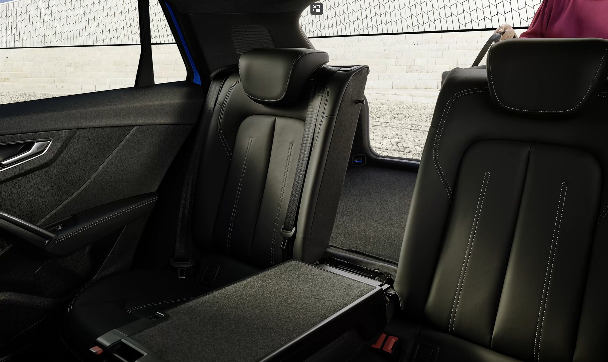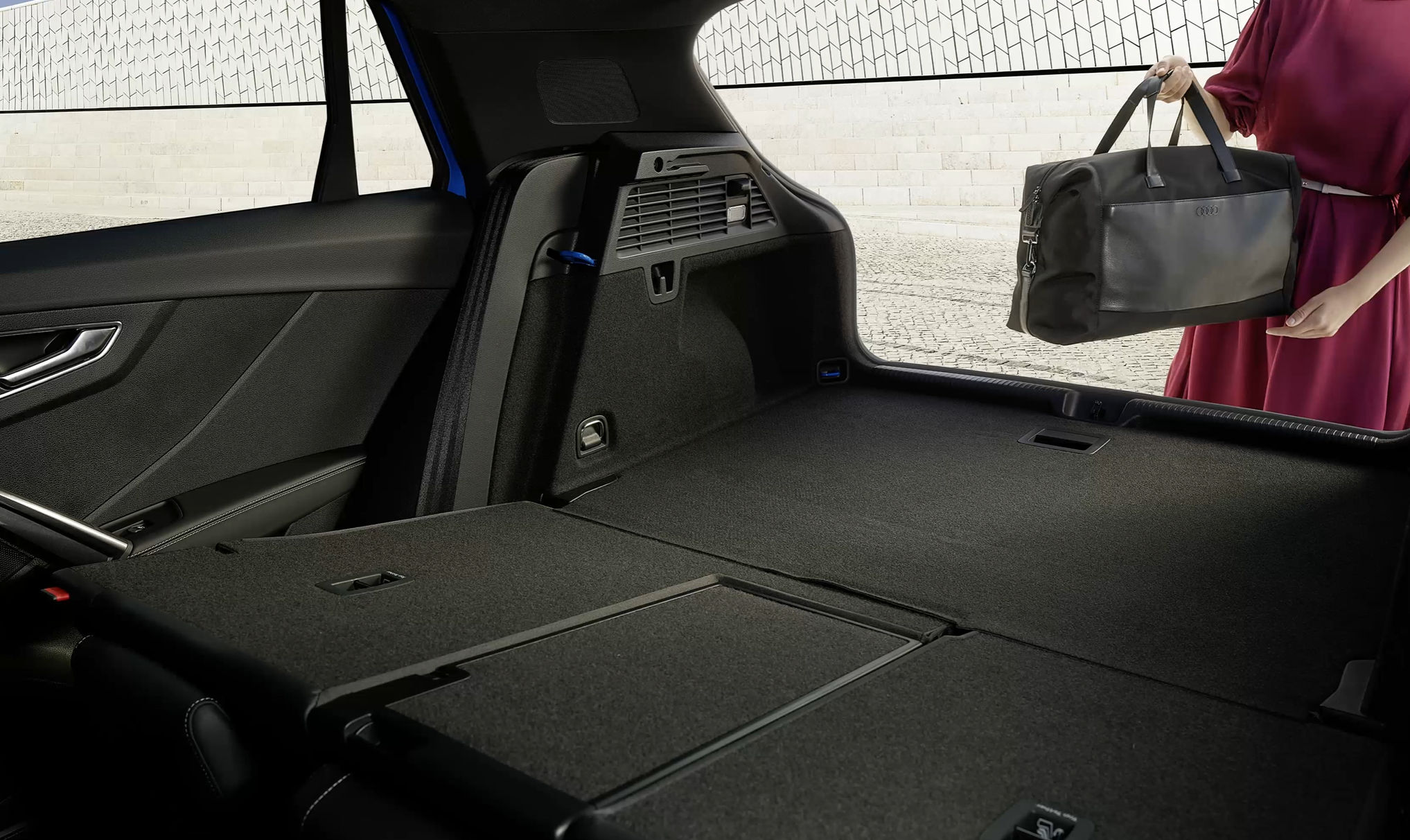 - Q2는 과거 버전에 비해 공간이 더욱 넓어졌습니다. 우선 전장이 17mm 연장되었고, 위 사진에서 보시는 것처럼 적재 용량도 늘었습니다. 기본적으로 5인승에 트렁크 용량이 405리터에 달하기 때문에 아이가 있는 집이면 패밀리카로, 평소에 화물을 많이 적재해야 하는 분들이라면 화물용으로, 여행이나 캠핑, 차박을 좋아하시는 분들이라면 레저용 등 다양한 용도로 활용할 수 있습니다. 등받이를 접는다면 적재 용량이 1050리터로 확장됩니다.